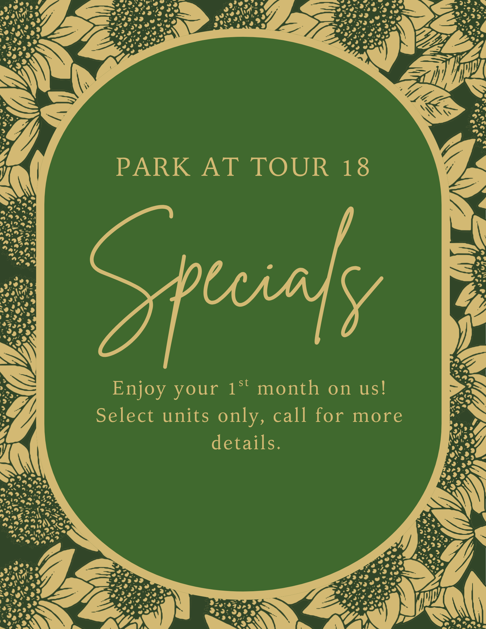 Enjoy premier amenities including golf course views, poolside cabanas, a stylish clubhouse, and scenic trails—all within a gated, pet-friendly community. Call us today and make Park at Tour 18 your next home!